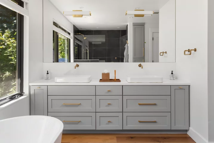 With these distinct environmental factors in mind, the materials for bathroom cabinets are usually moisture-resistant to preserve the cabinets’ finish and longevity.