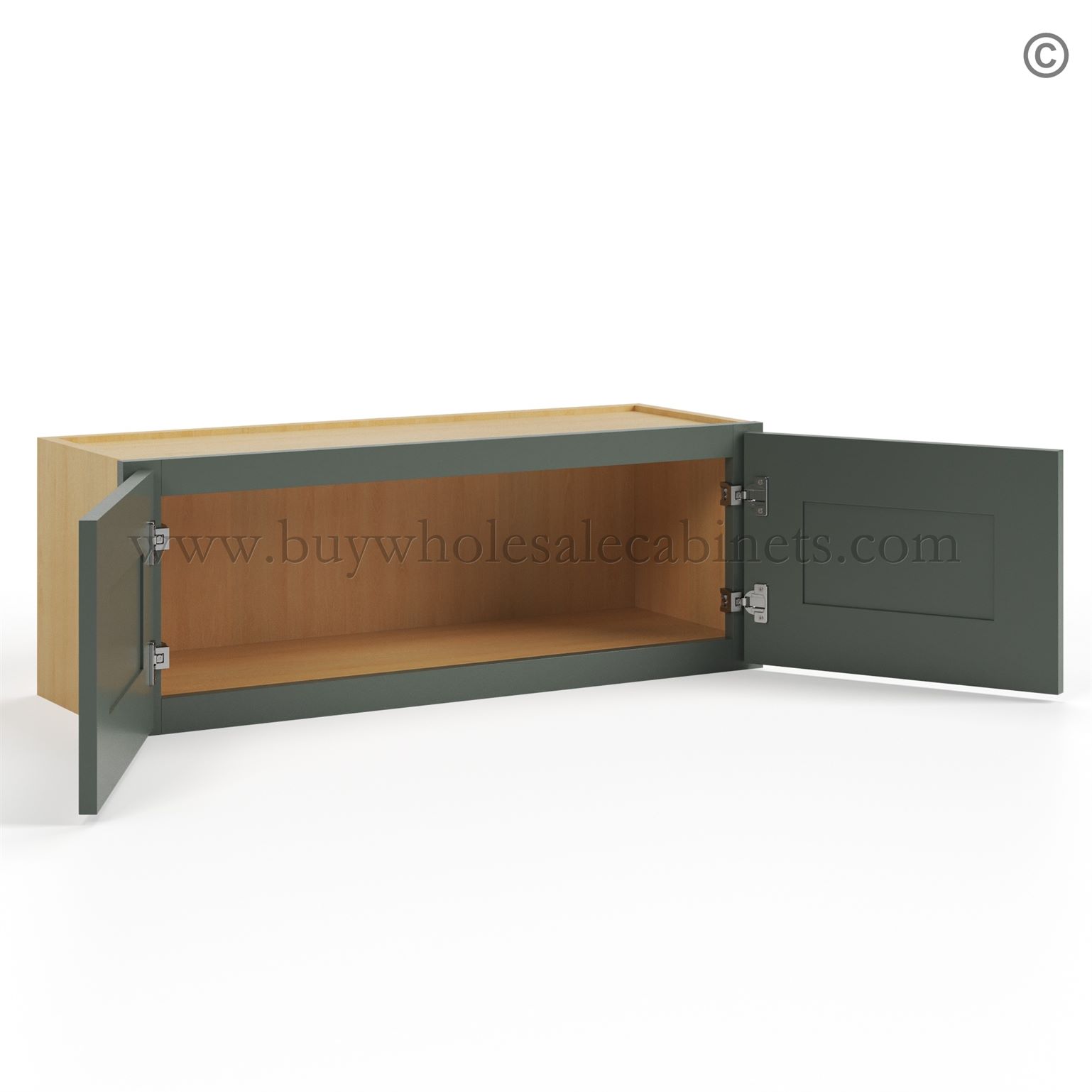 Designed for your convenience, these cabinets feature European soft-close hinges, ensuring smooth and quiet operation every time. Cabinet Green has no shelf.