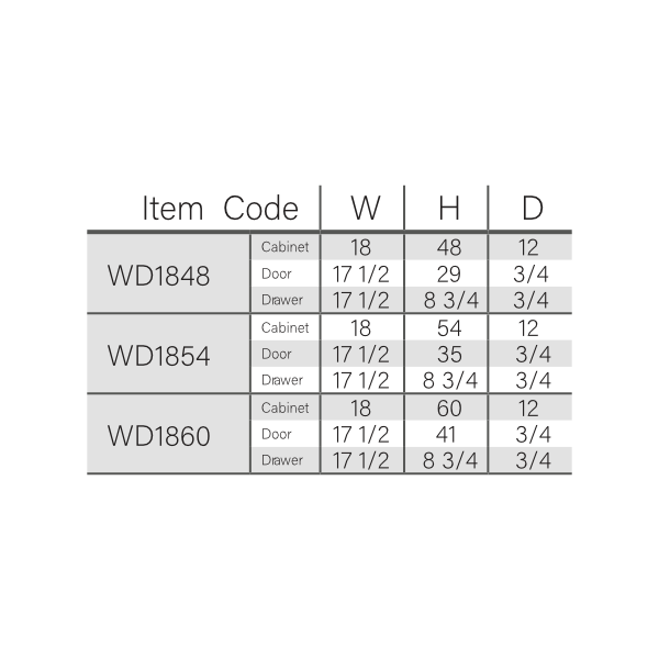 18"W x 48"H x 12"D ,18"W x 54"H x 12"D ,18"W x 60"H x 12"D |