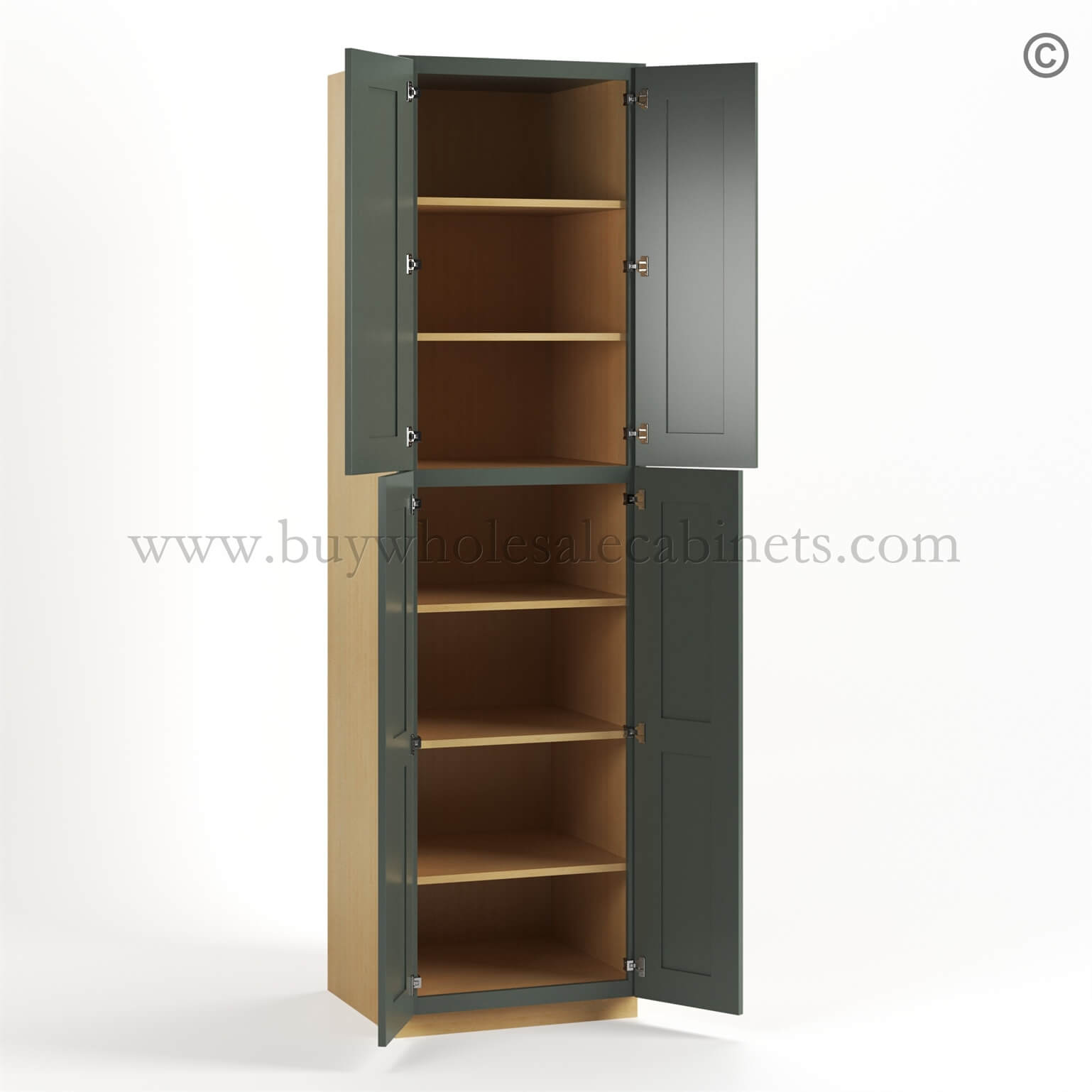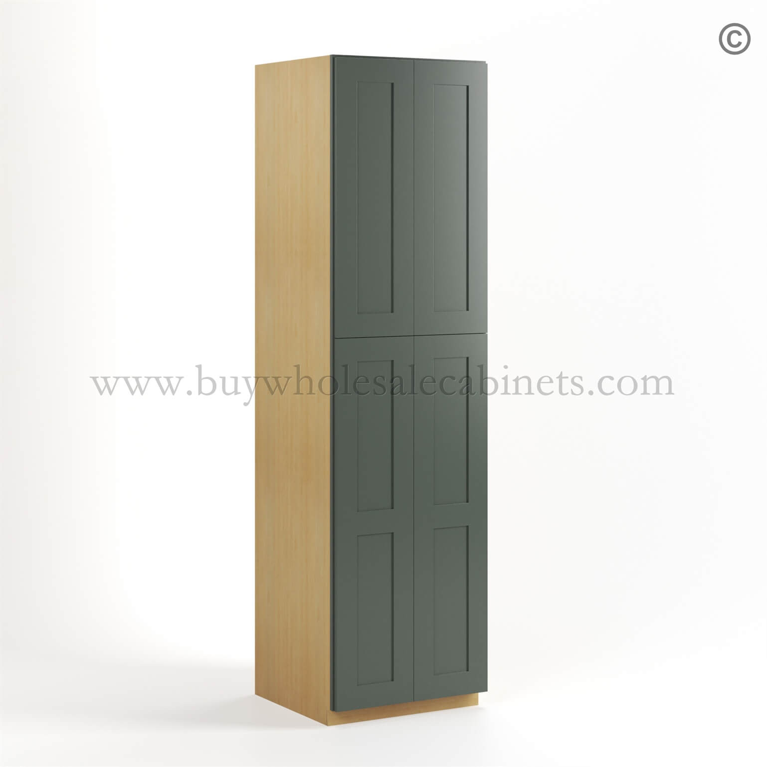 Our Green Shaker 24 W Utility Pantry Cabinet is 24″ Wide, 24″ Deep, and available in 3 heights. This Pantry Cabinet features 2 adjustable top shelves and 3 bottom shelves. This cabinet Green will fit perfectly in your kitchen or bathroom. The brilliant shade of shaker green cabinet will make your rooms exude modernity and quality.