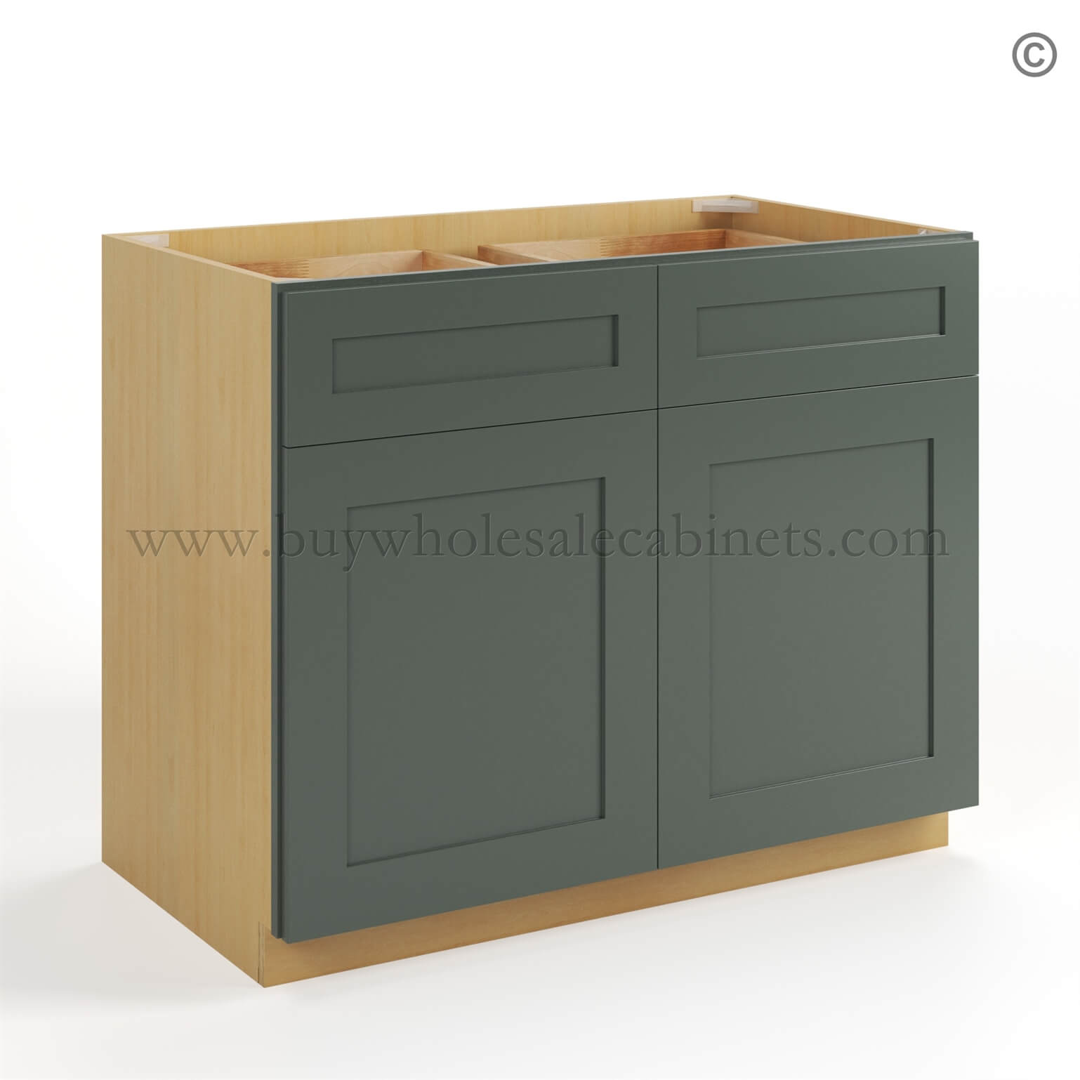 Our Green Shaker Base Cabinet with Double Doors and Drawers is 34.5″ tall, 24″ long, and available in 4 widths (30″, 33″, 36″, 42″). This cabinet Green will fit perfectly in your kitchen or bathroom. The brilliant shade of shaker green cabinet will make your rooms exude modernity and quality.