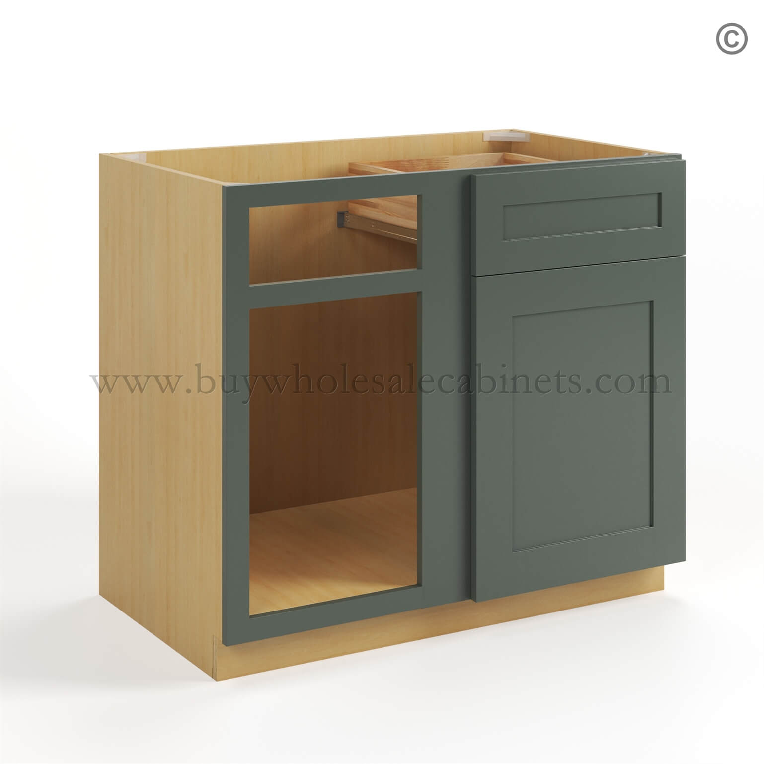 Green Shaker Blind Corner Base Cabinet
