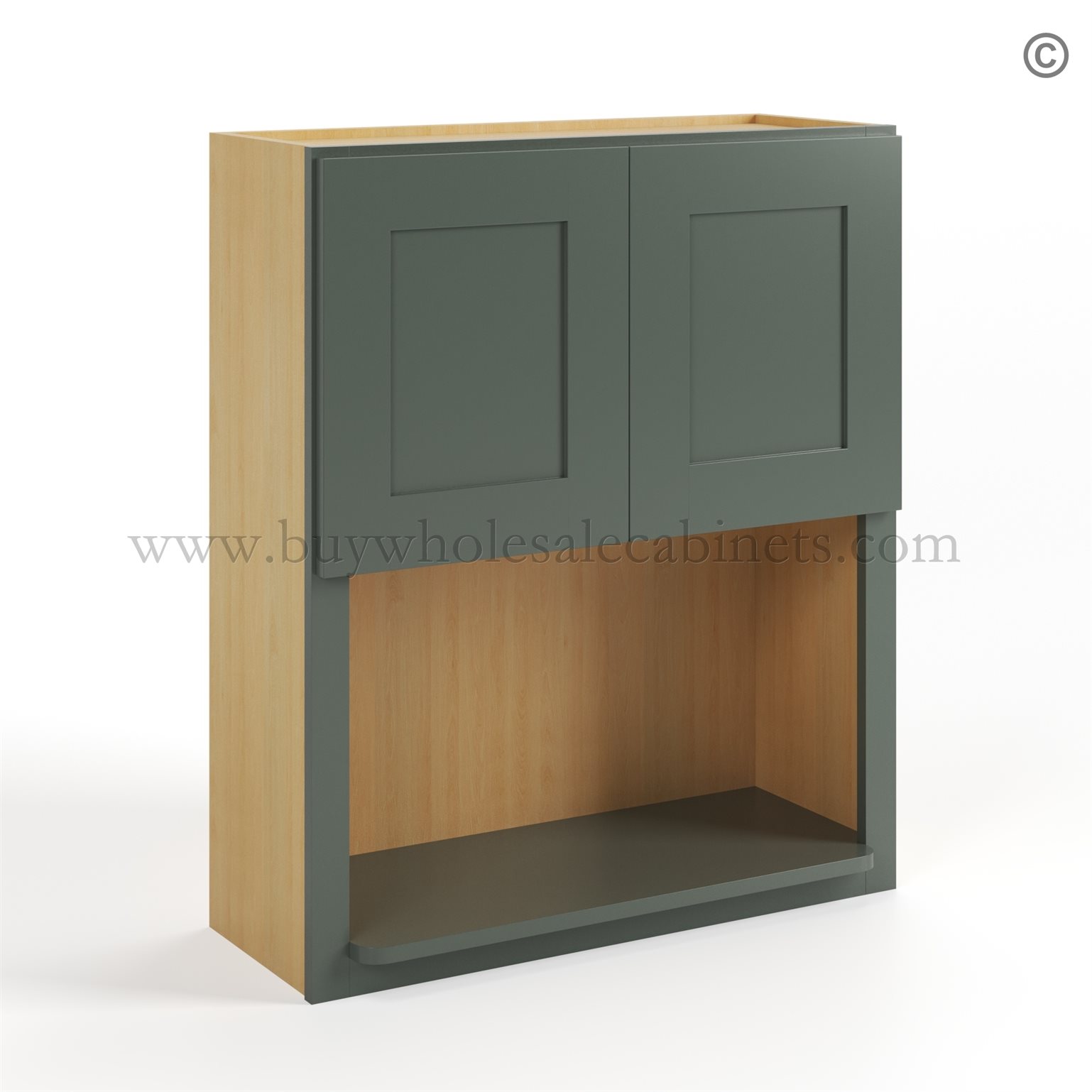 Our Green Shaker Microwave Wall Cabinet is 30″ wide, 12″ deep, and available in 3 different heights (30″, 36″, 42″). This cabinet Green will fit perfectly in your kitchen or bathroom. The brilliant shade of shaker green cabinet will make your rooms exude modernity and quality.