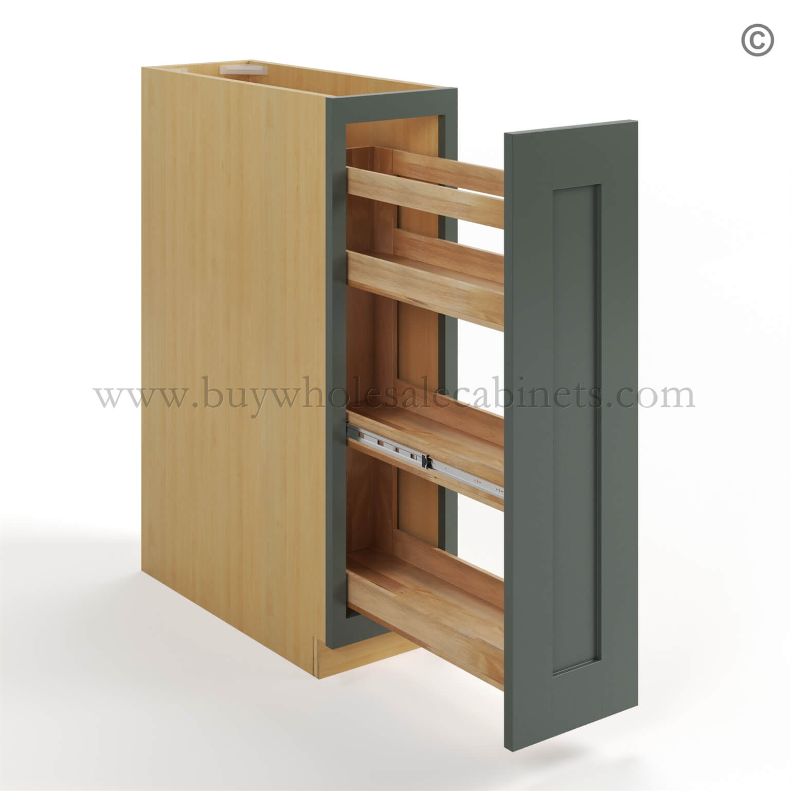 Green Shaker Spice Pull Base Cabinet