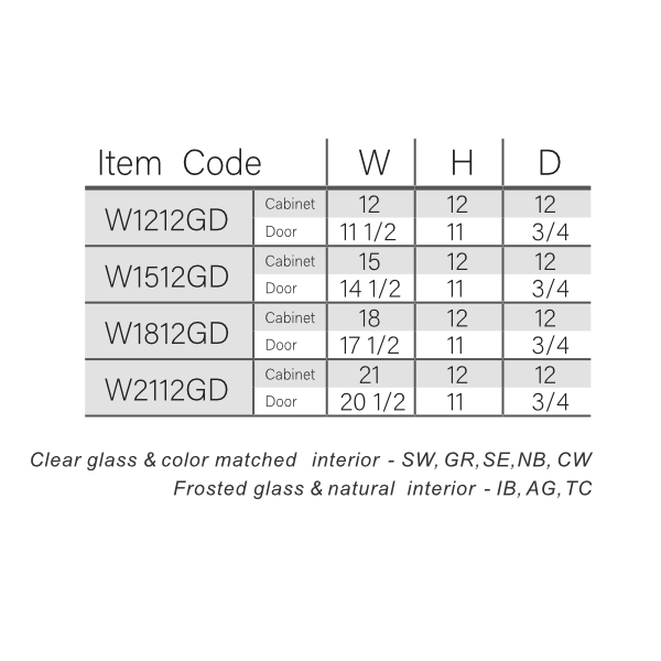 Cabinet Dimensions: 12″W x 12″H x 12″D, 15″W x 12″H x 12″D, 18″W x 12″H x 12″D, 21″W x 12″H x 12″D
