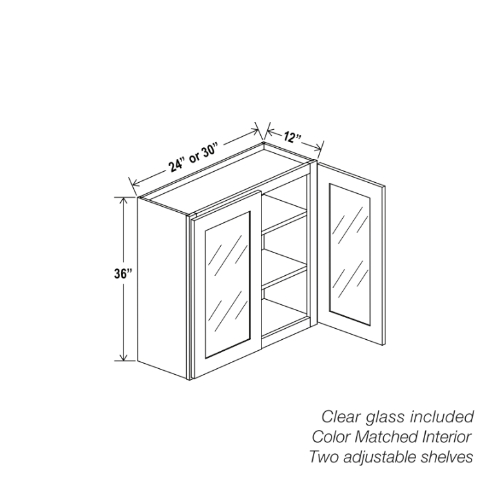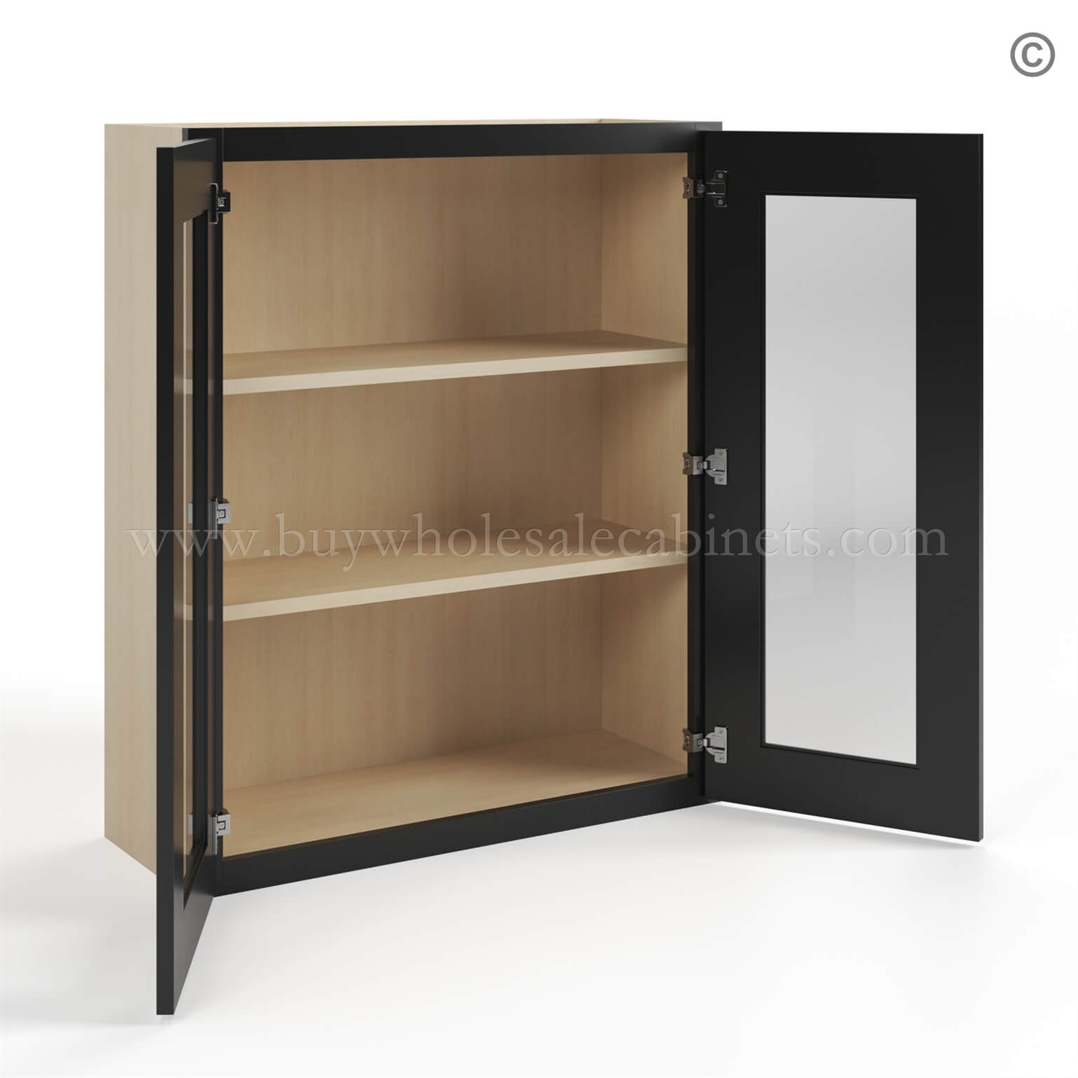 Our Black 36 H Double Door Wall Cabinet with Glass Doors is 36″ in height and available in 2 widths (24″, 30″). This cabinet Black will fit perfectly in your kitchen or bathroom. The brilliant shade of Black cabinets will make your rooms exude modernity and quality.