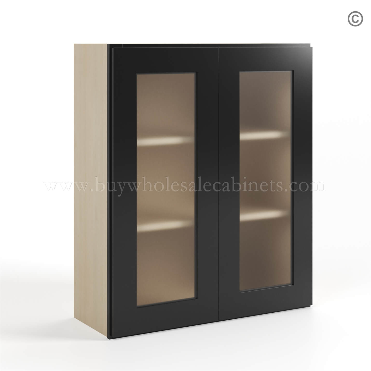 Black Shaker 36 H Double Door Wall Cabinet with Glass Doors