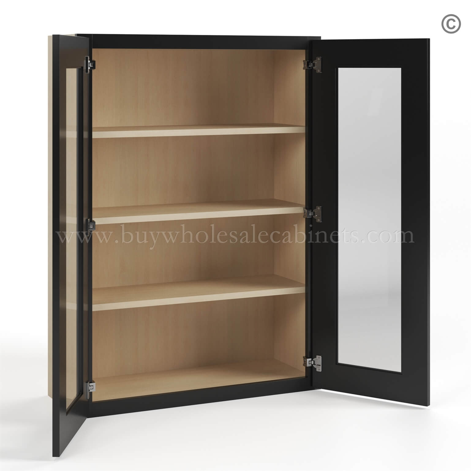 Black Shaker 42 H Double Door Wall Cabinet with Glass Doors