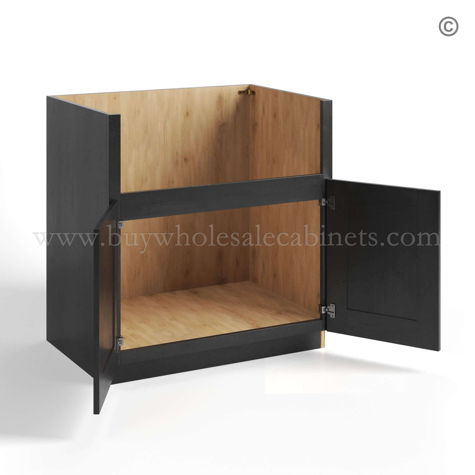 Our RTA Charcoal Black Shaker cabinets are finished with a high quality stain and the side panels are finished.