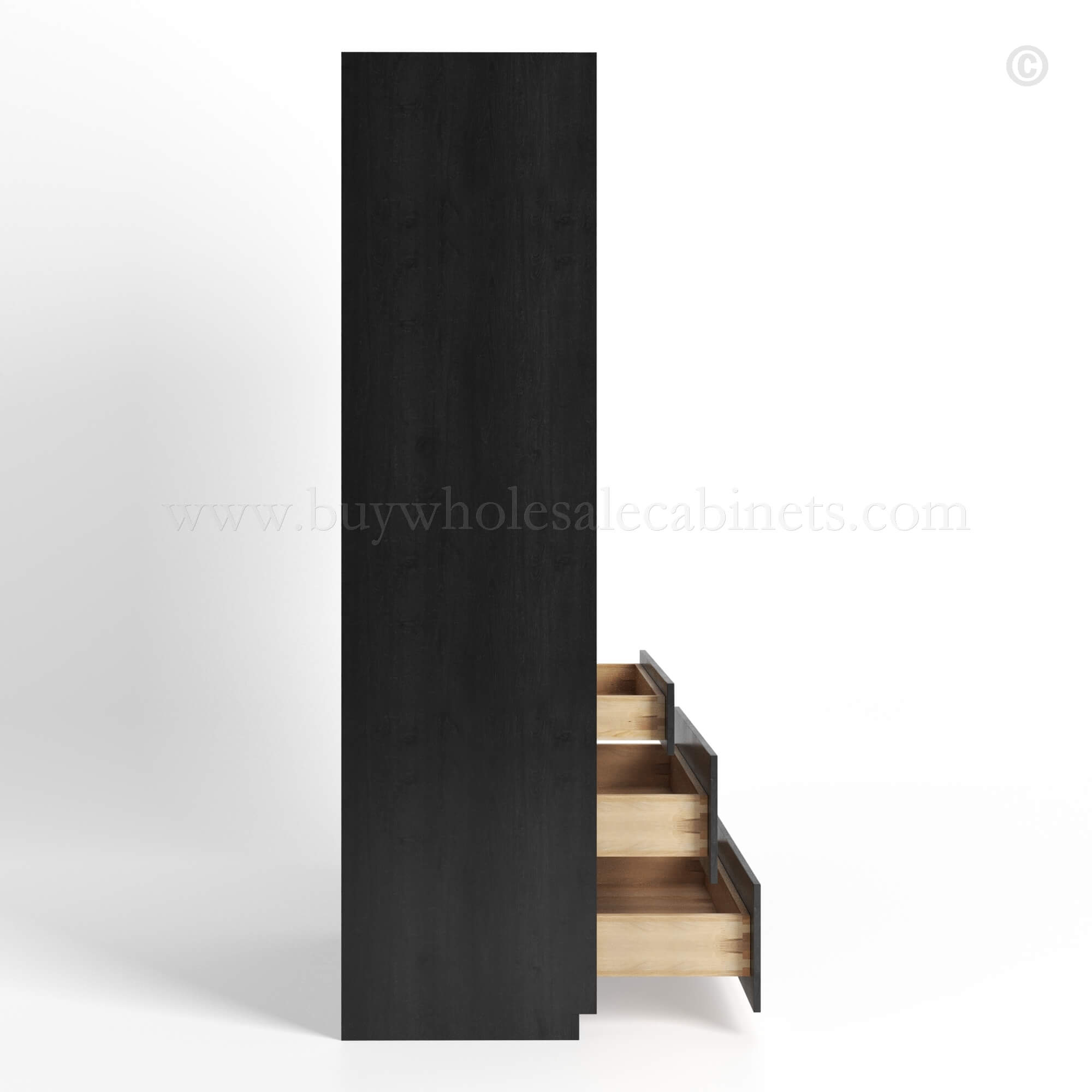 Our RTA Charcoal Black Shaker cabinets are finished with a high quality stain and the side panels are finished.