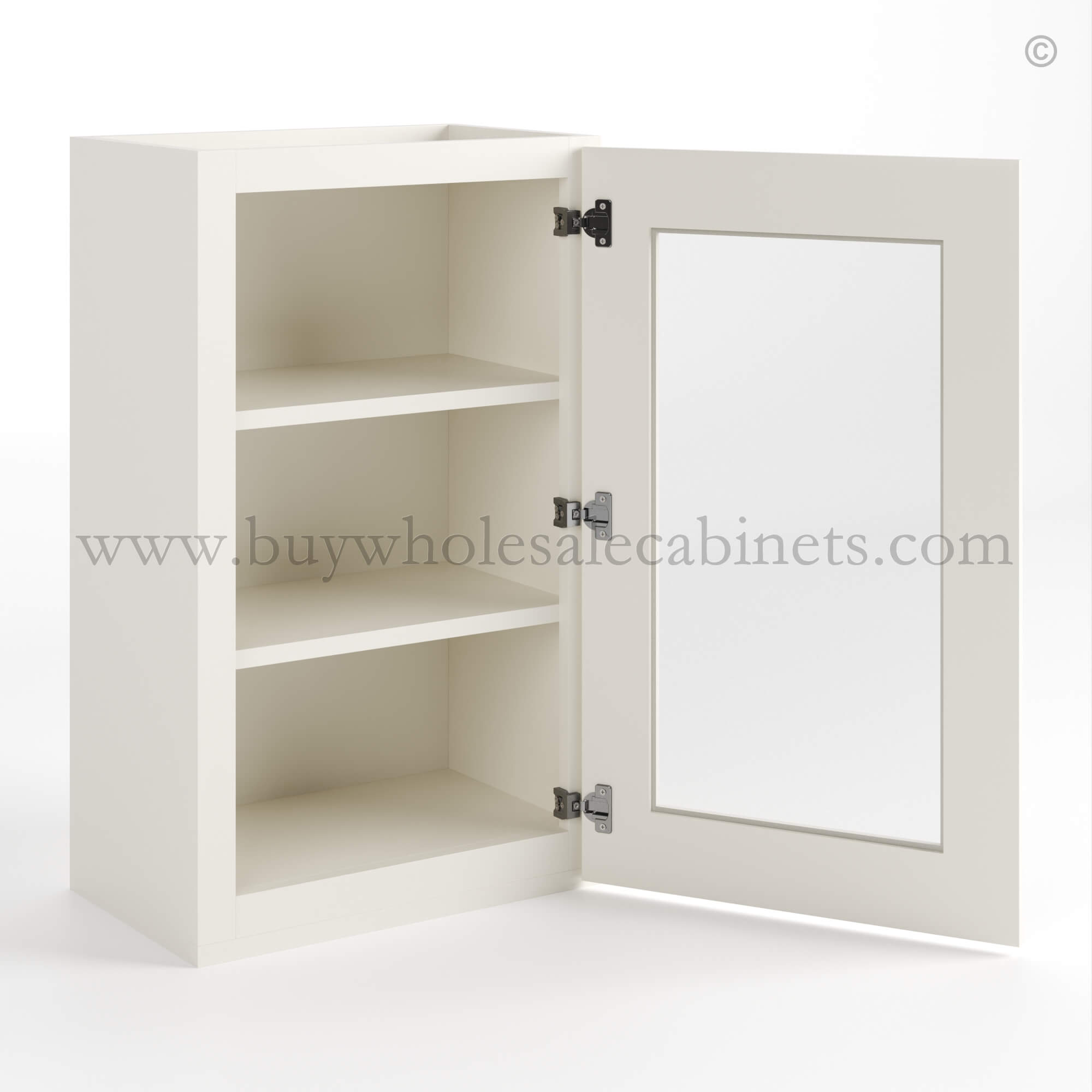 Charleston White Raised Panel 36″ H Double Door Wall Cabinet with Glass Doors