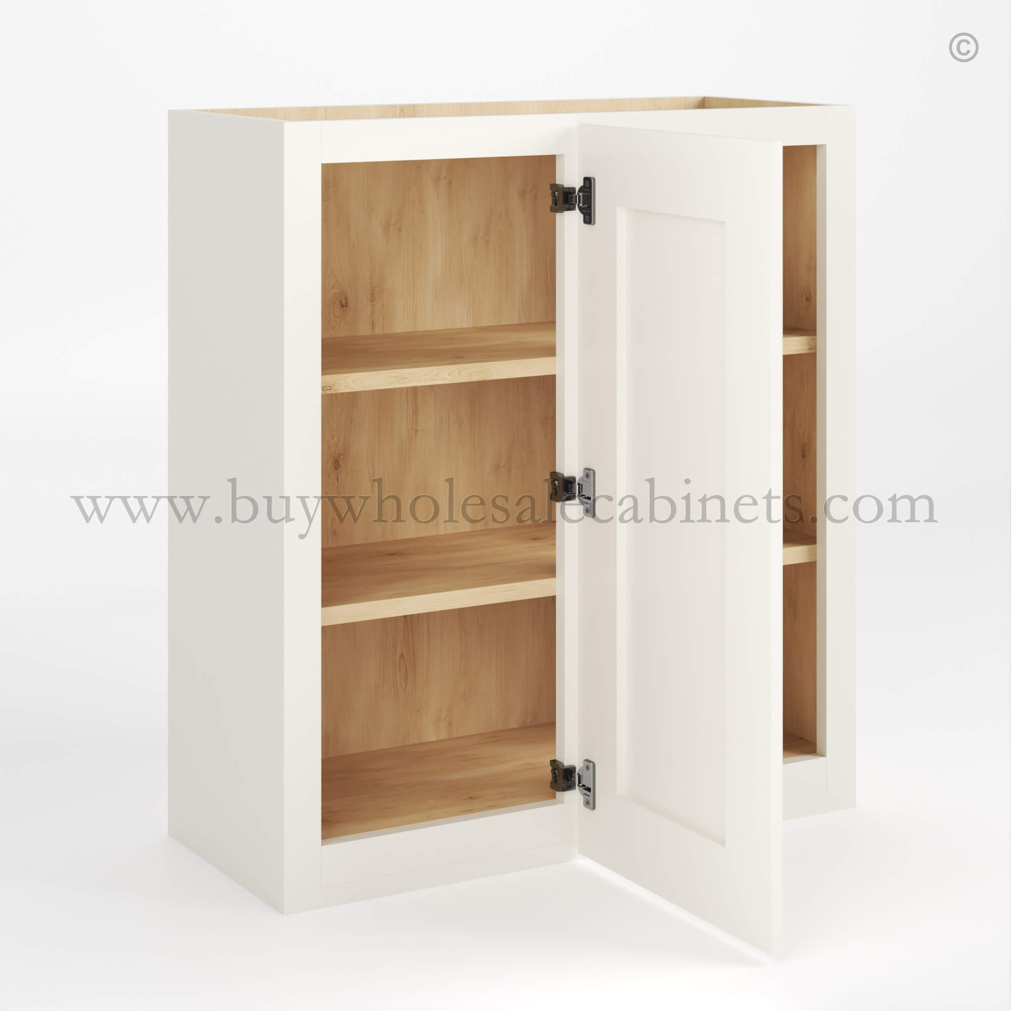 Our Charleston White Raised Panel 30 H Wall Blind Cabinet is 30″ tall, 12″ deep, and available in 3 different widths (24″, 27″, 36″).