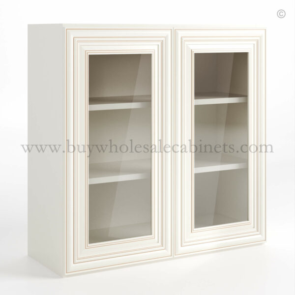 Charleston White Raised Panel 36″ H Double Door Wall Cabinet with Glass Doors