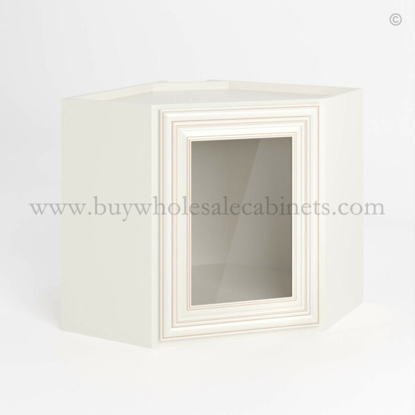 Charleston White Raised Panel 12 x 24 Diagonal Corner Wall Cabinet with Glass Door