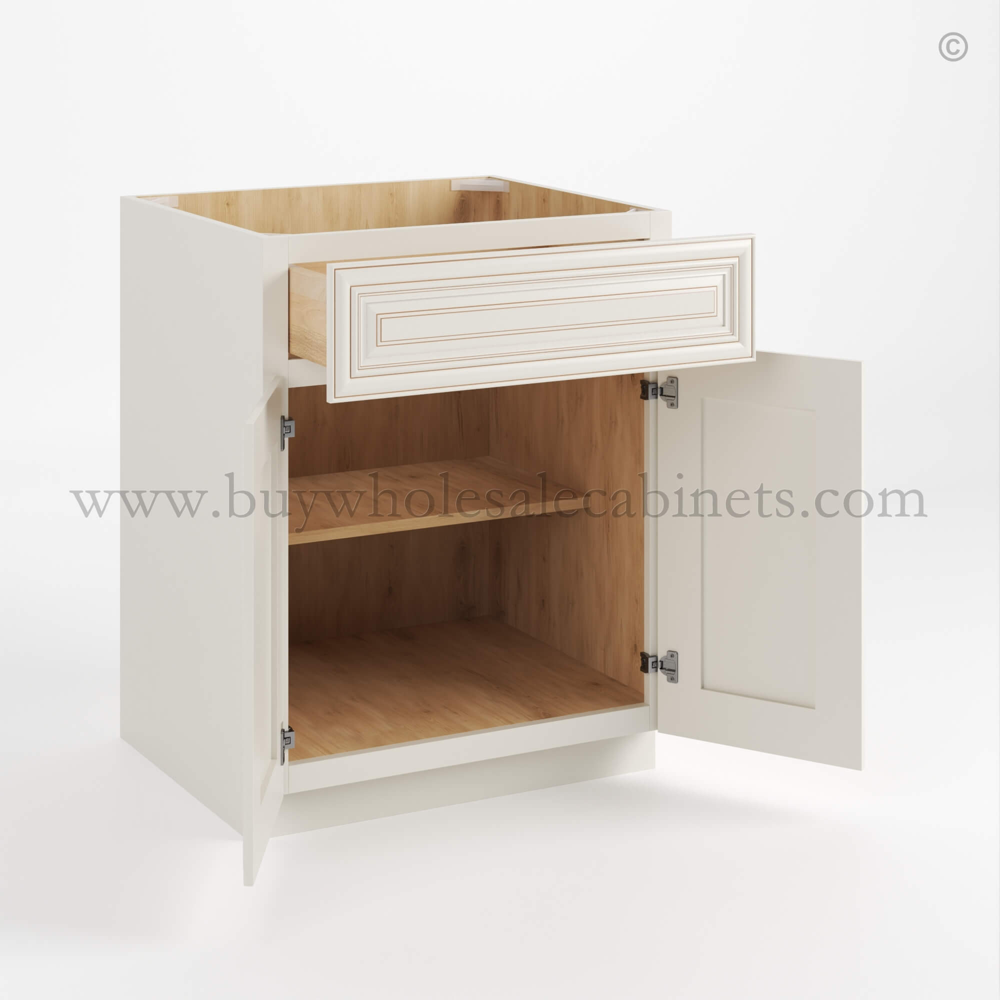 Charleston White Raised Panel Easy Reach Base Cabinet