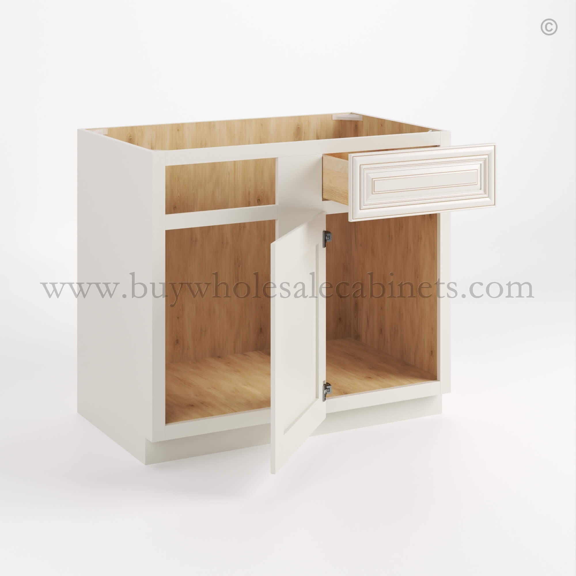 Charleston White Raised Panel Base Cabinet with Double Doors & Single Drawer