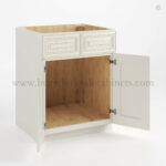 Our Charleston White Raised Panel Sink Base With Double Doors and False Drawers is 34.5″ tall, 24″ deep, and available in 3 widths (30″, 33″, 36″).