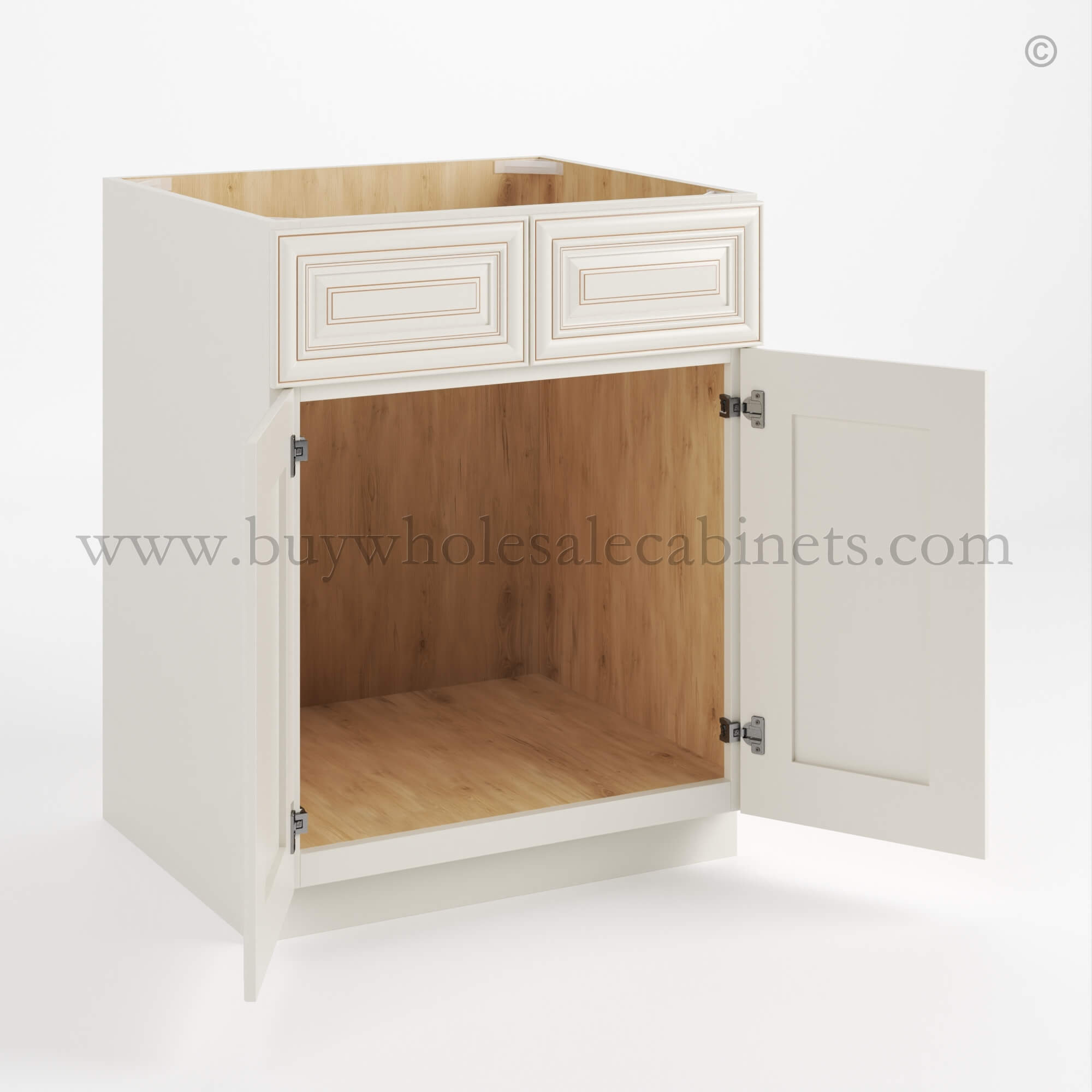 Charleston White Raised Panel Sink Base With Double Doors and False Drawers