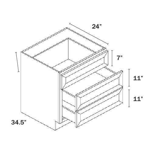 Dorian Gray Shaker Base cabinet with 3 Drawers