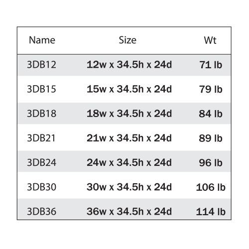 Box Construction: 1/2″ A-Grade Plywood with metal L bracket reinforcements for base cabinets