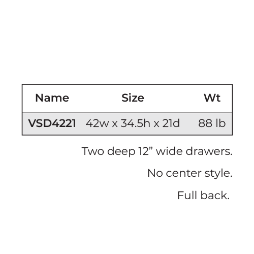 Drawer Glides: ⅝” thick cabinet grade plywood sides with Full Extension, Soft-Close concealed undermount steel glides.