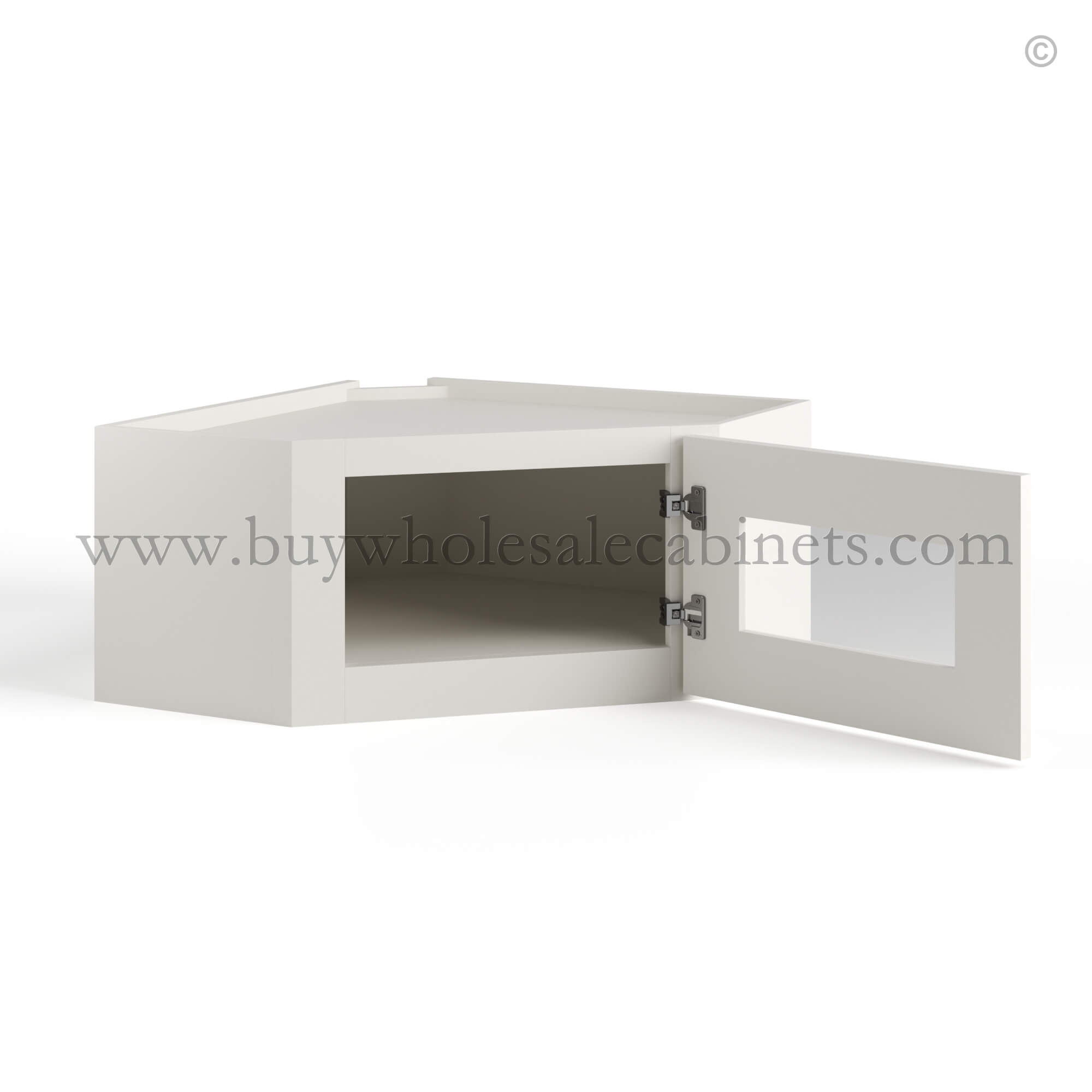 Dove White Slim Shaker Diagonal Corner Wall Shelf with Glass Door