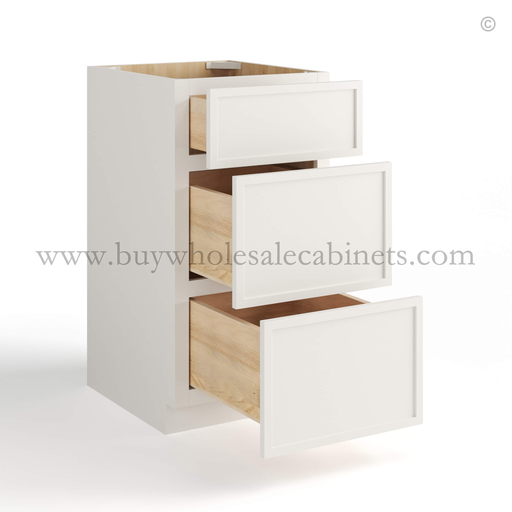 Dove White Slim Shaker Vanity Three Drawer Base Cabinet