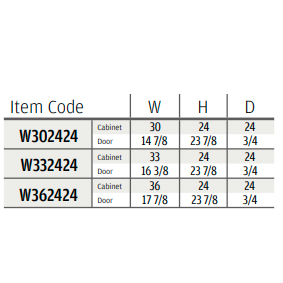 -30%30"W x 24"H x 12"D33"W x 24"H x 12"D36"W x 24"H x 12"D