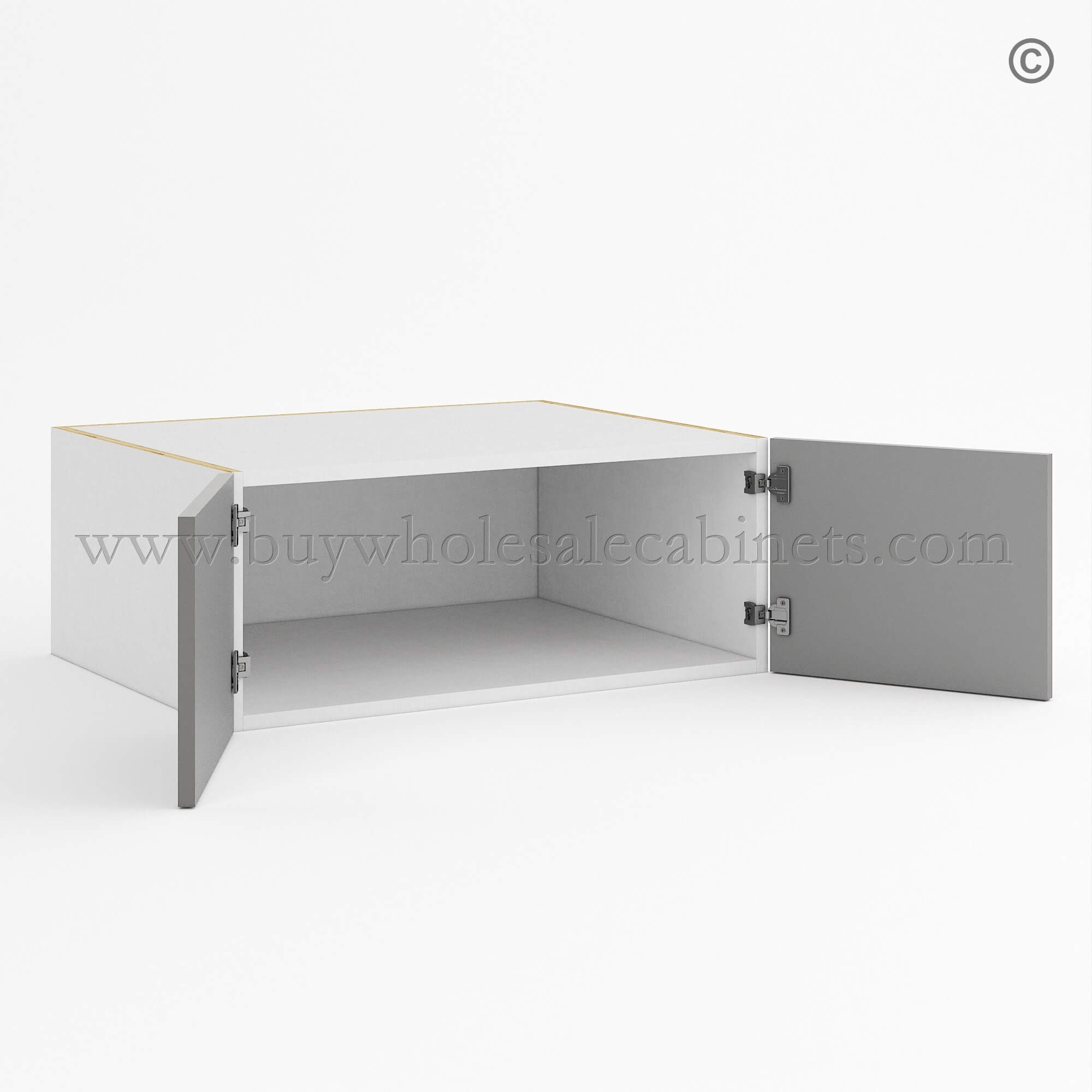 Frameless Gloss Gray 24D Refrigerator Wall Cabinet with Double Door 12H