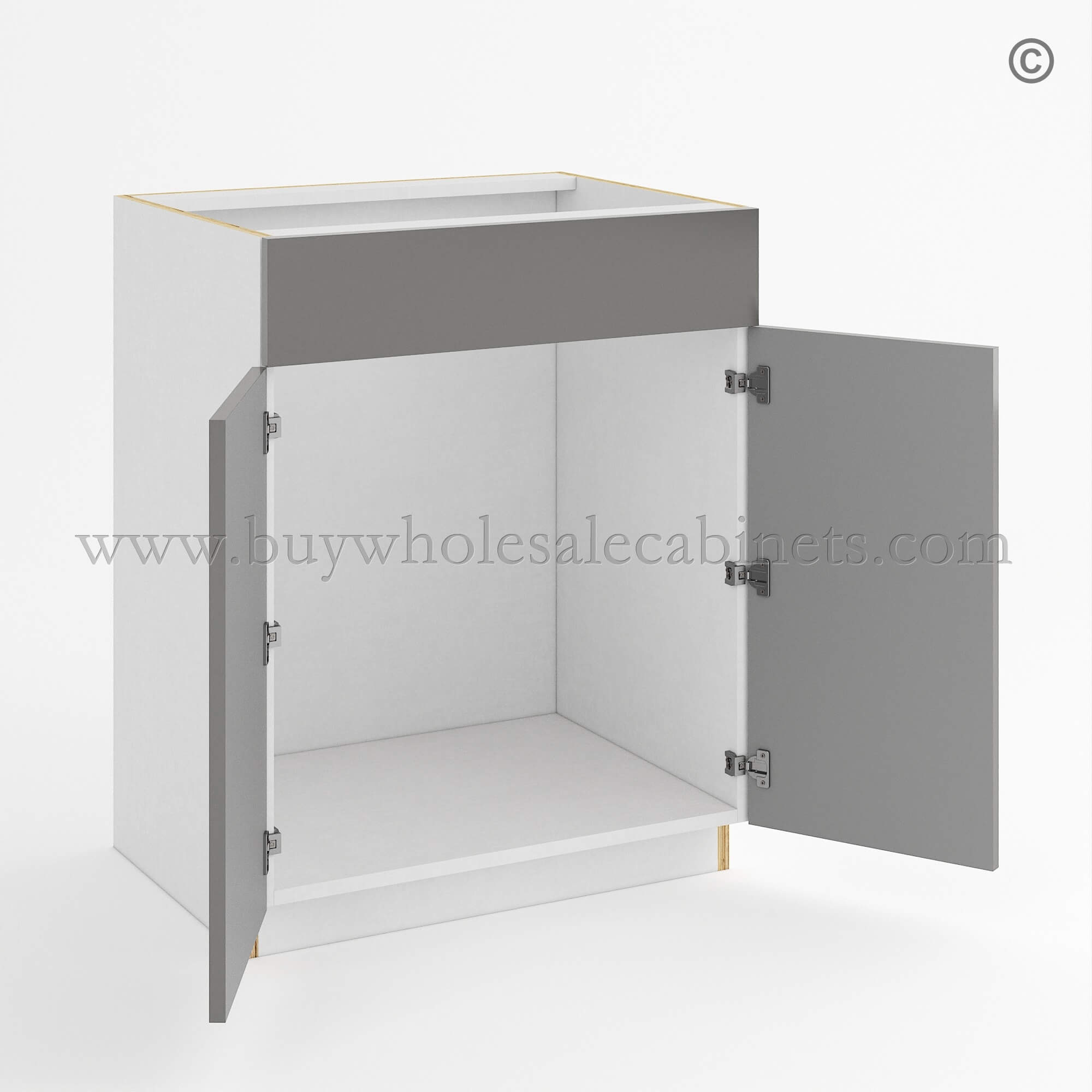 Order the Frameless Gloss Gray Double Door Single Dummy Drawer Vanity Sink Base and furnish the kitchen with the best selection of RTA cabinets!