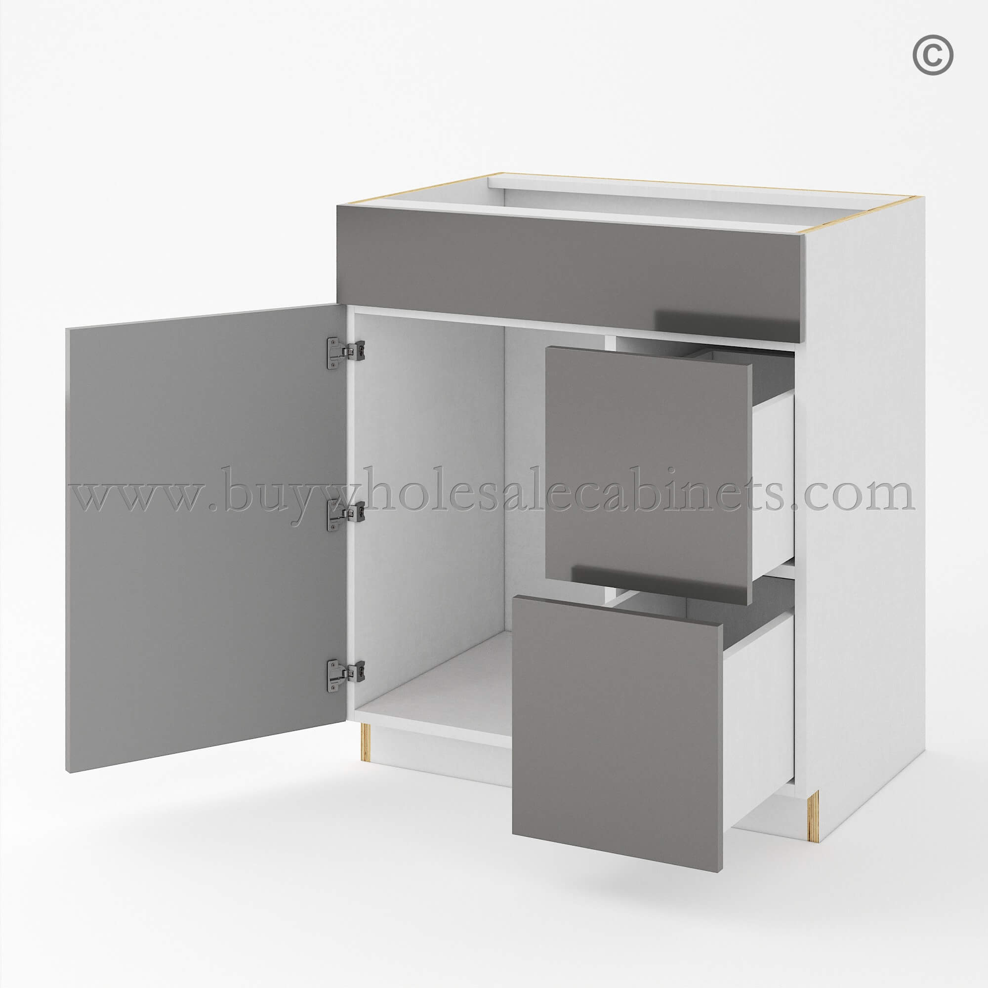 • dorian gray shaker base trash cabinet with single door and drawer closed, rta cabinetsRTA Dorian Gray Shaker Cabinets