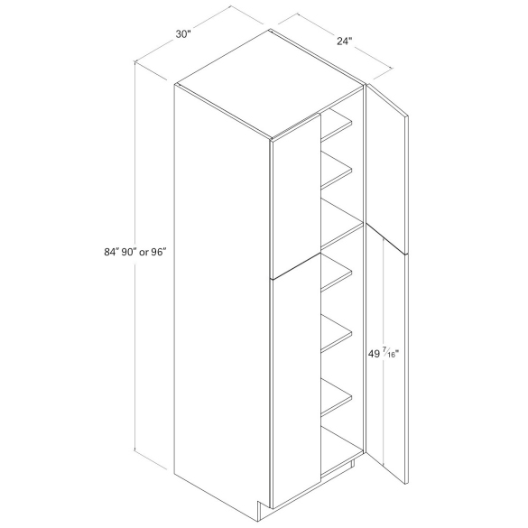This RTA cabinet frameless gray tall pantry with 4 doors will complete your kitchen! Design your perfect kitchen and check out our selection of Frameless Gloss Gray Cabinets.