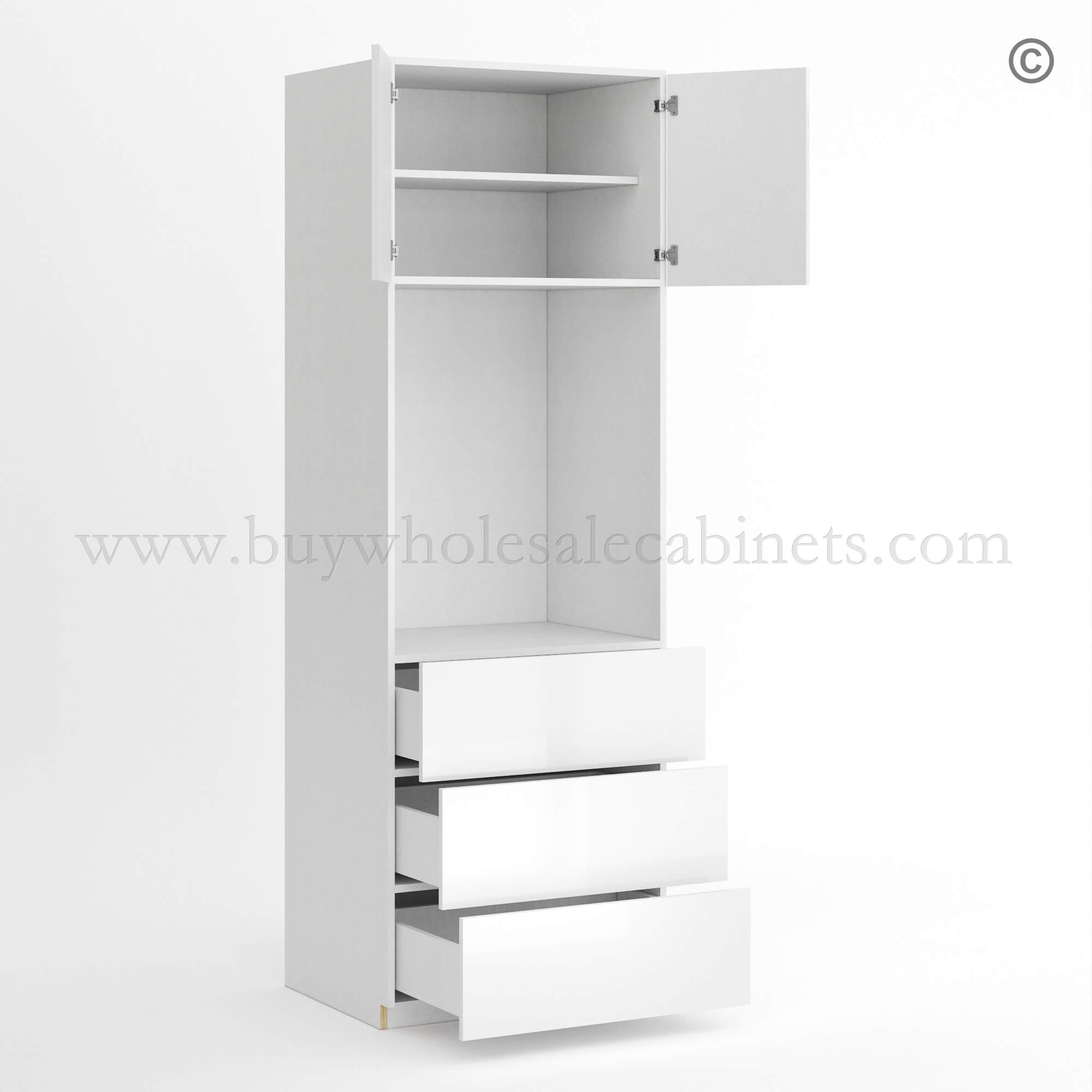 Order the Frameless Gloss White Oven Pantry Cabinet 33W and furnish the kitchen with the best selection of RTA cabinets!
