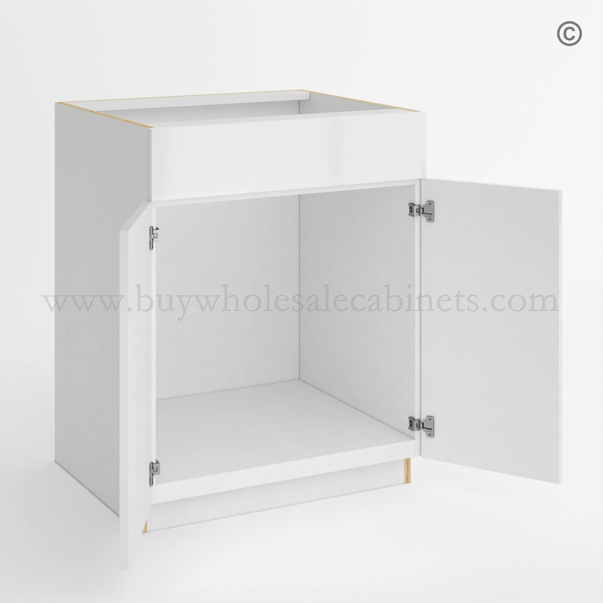 This RTA cabinet frameless white sink base will complete your kitchen! Design your perfect kitchen and check out our selection of Frameless Gloss White Cabinets. Order the Frameless Gloss White Sink Base With Double Doors and Single Dummy Drawer and furnish the kitchen with the best selection of RTA cabinets!