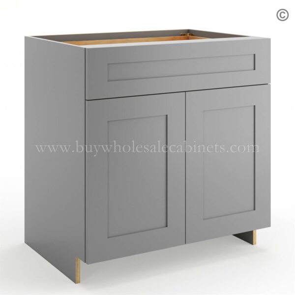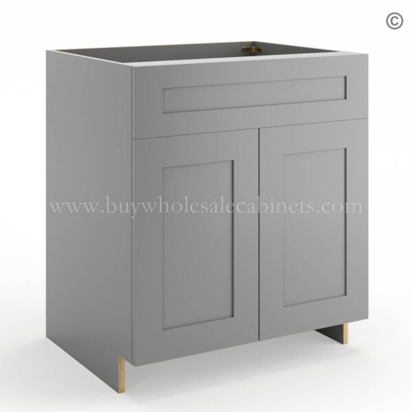Frameless Graphite Gray Sink Base Cabinet – 2 Doors & 1 False Drawer