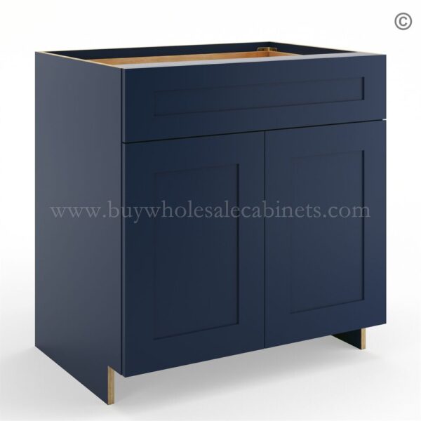 Frameless Oxford Blue Base Cabinet – 1 Drawer, 2 Doors, 1 Shelf