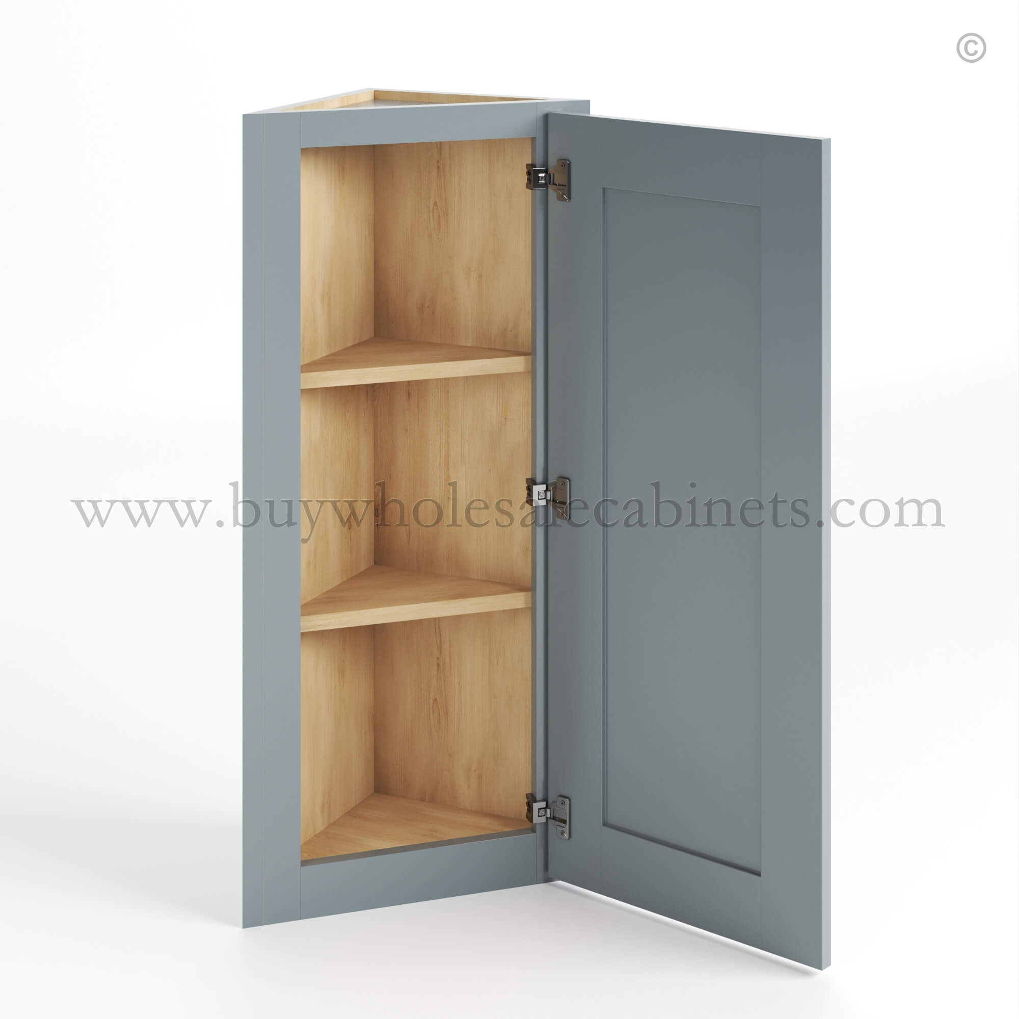 Gray Shaker 24 Diagonal Corner Wall Cabinet, rta cabinets