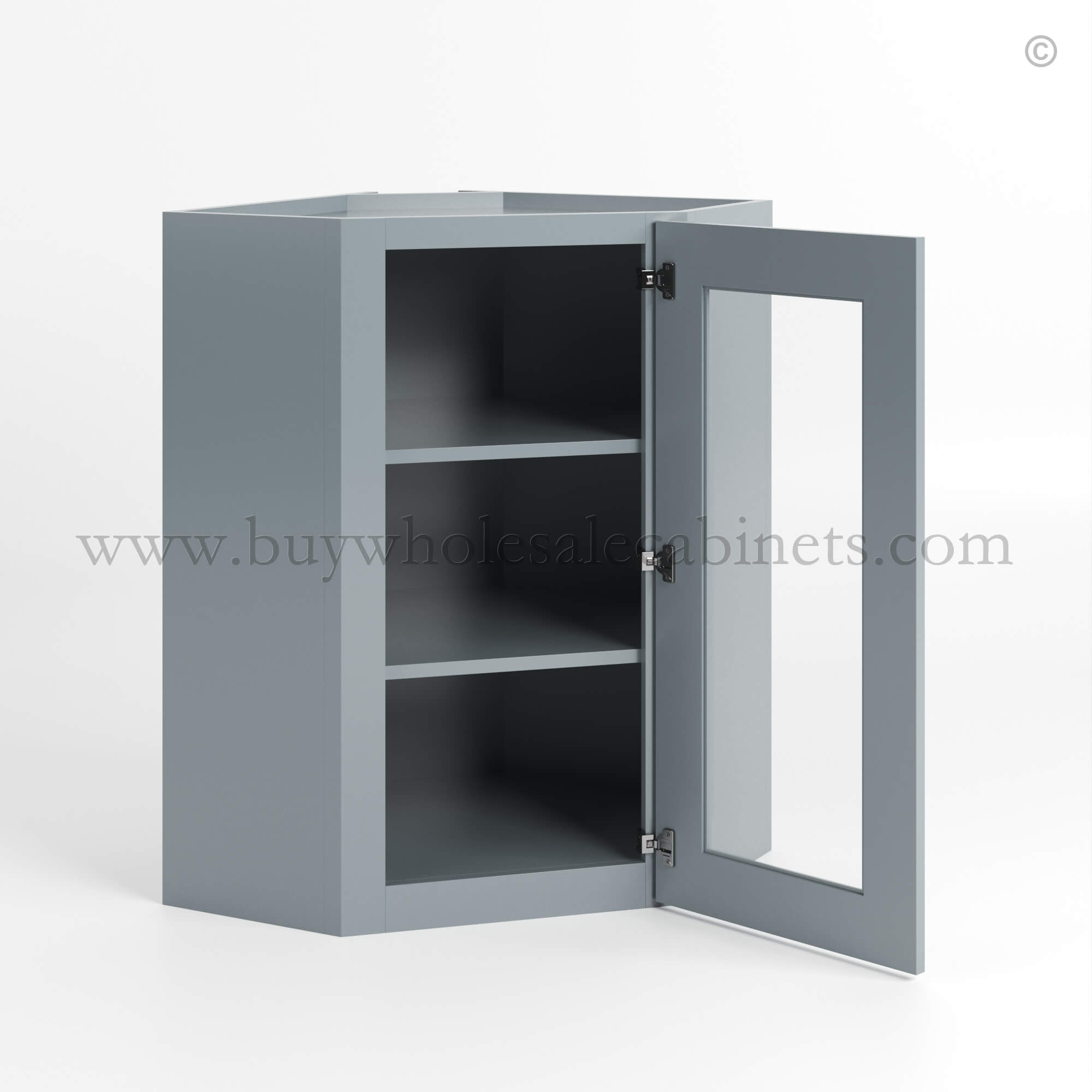 Gray Shaker 12″ x 24″ Diagonal Corner Wall Cabinet with Glass Door