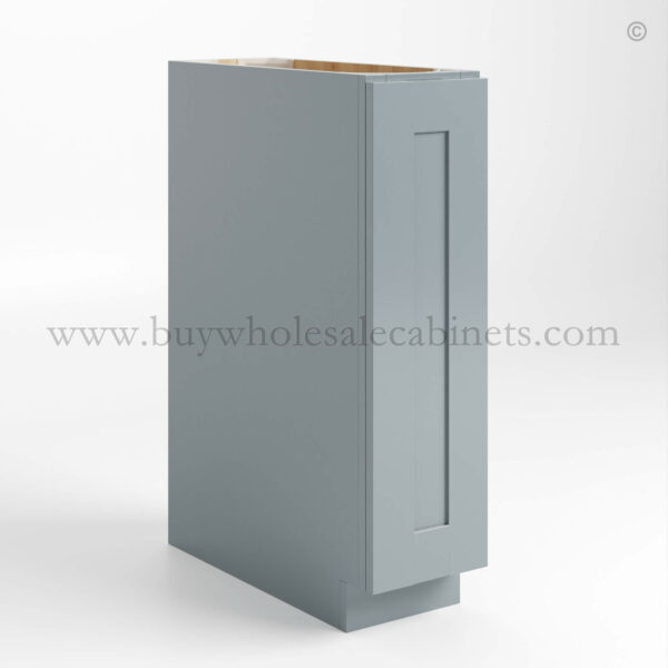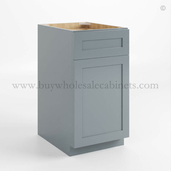 Our Gray Shaker Base Cabinet Single Door Full Height is 34.5″ tall, 24″ deep, and available in 4 widths (12″, 15″, 18″, 21″).