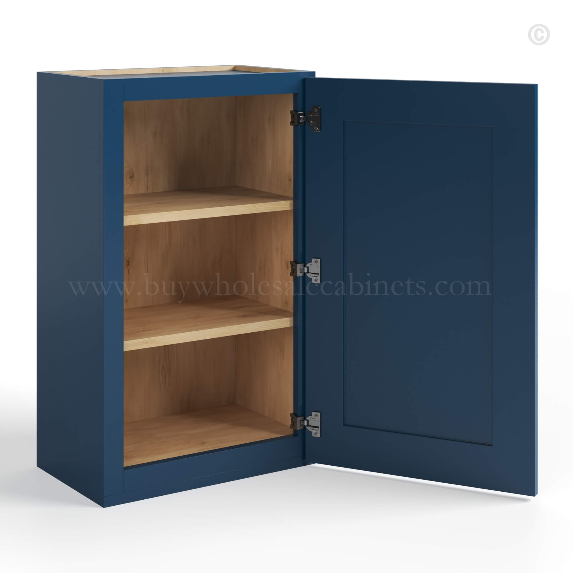 Our Navy Blue Shaker 30 H Single Door Wall Cabinet is 30″ tall, 12″ deep, and available in 5 widths (09″, 12″, 15″, 18″, 21″).