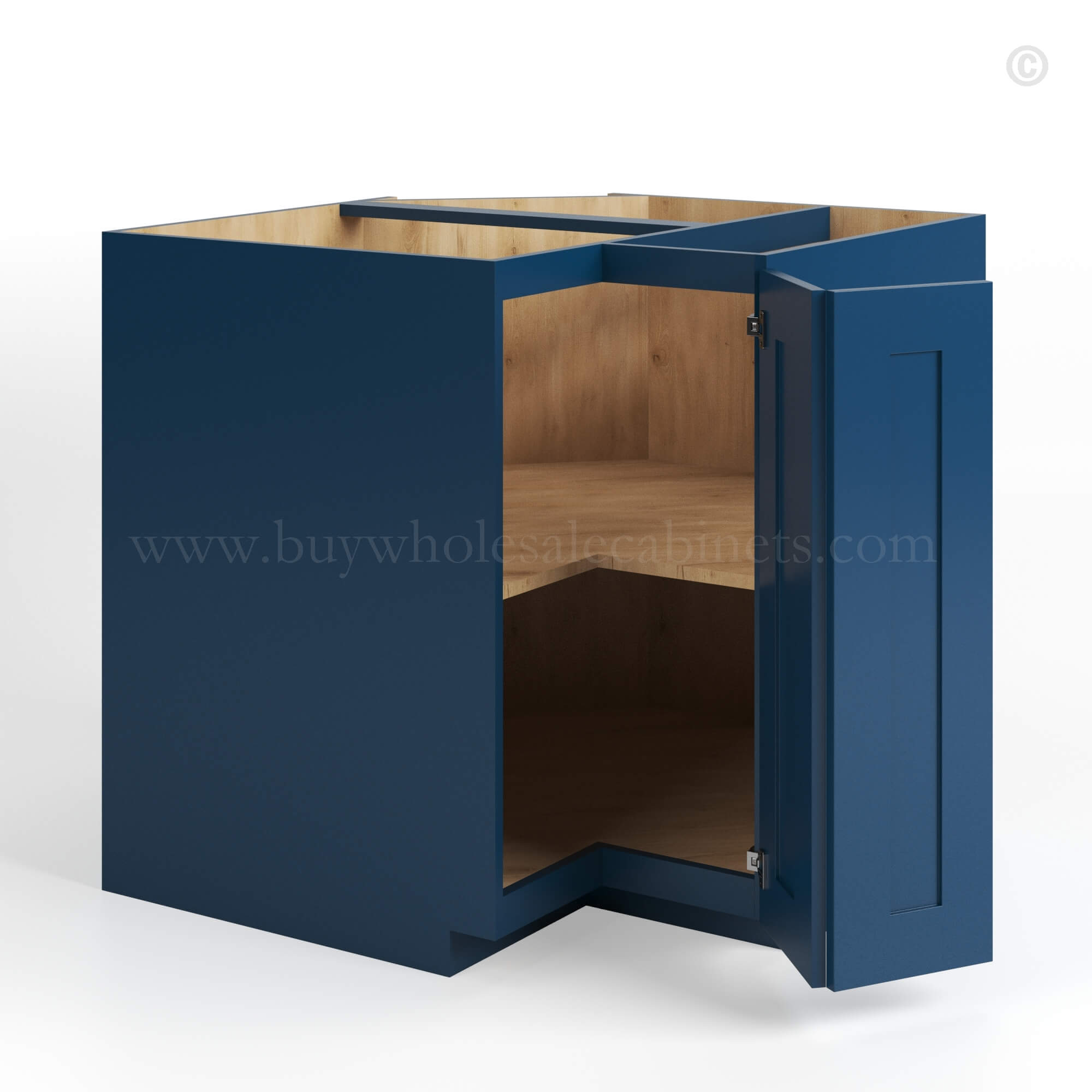 Designed for your convenience, this shaker Navy Blue base cabinets features European soft-close hinges that are interchangeable, ensuring smooth and quiet operation every time on it’s bi-fold door.
