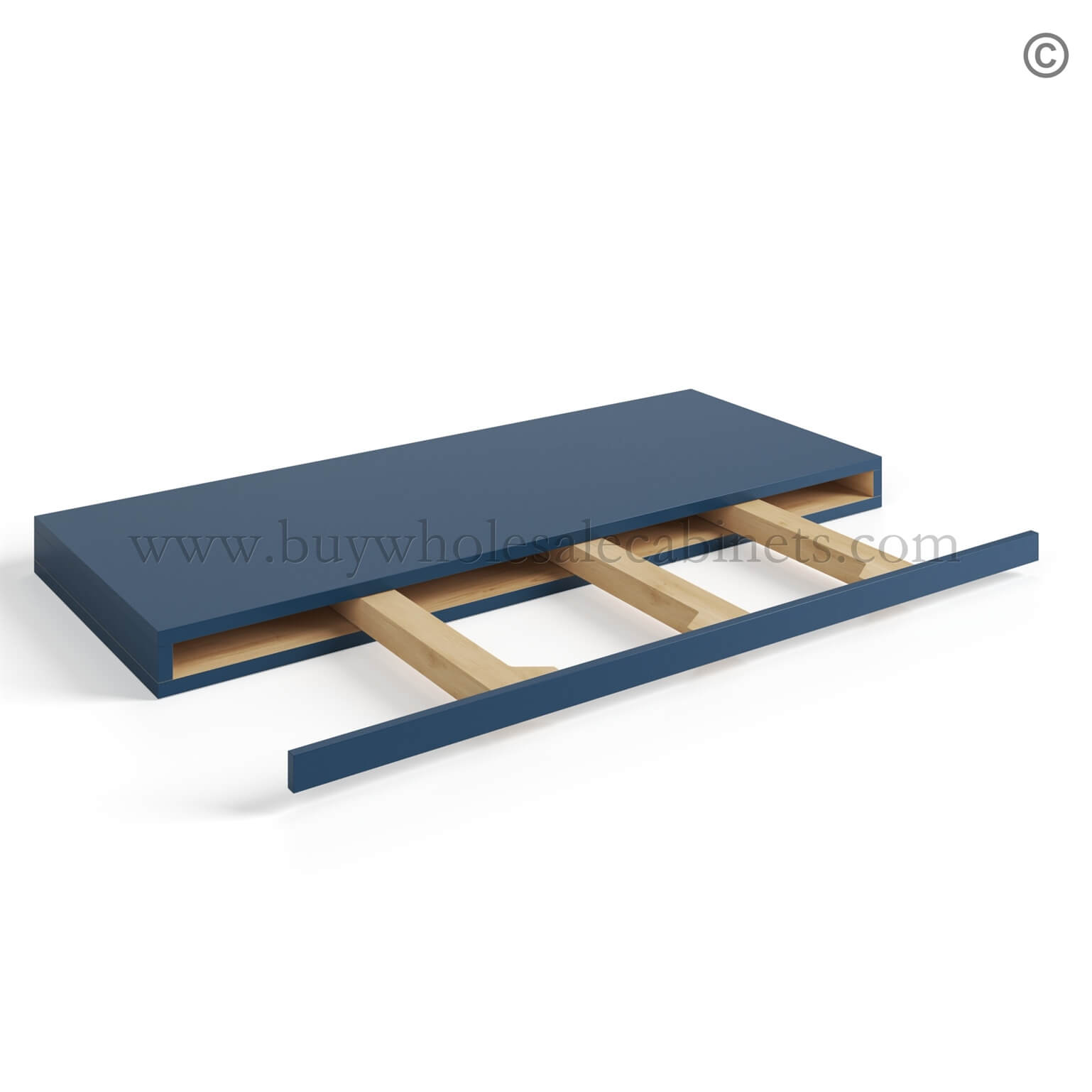 Our Navy Blue Shaker Floating Shelf is 12″ wide, 6″ deep, and available in 3 different heights (30″, 36″, 42″). This shaker navy blue cabinet will fit perfectly in your kitchen or bathroom. The brilliant shade of shaker navy blue cabinet will make your rooms exude modernity and quality.