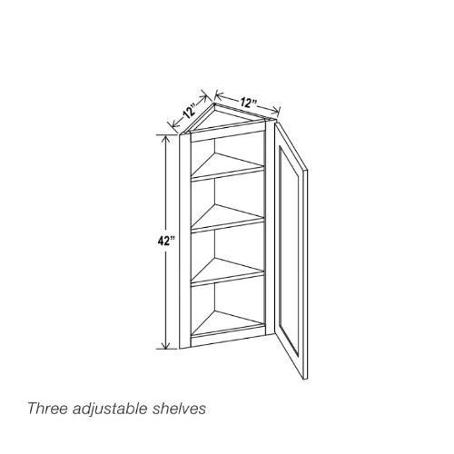 Our Shaker Espresso 12 W Angle Wall Cabinet is 12″ wide 12″ deep, and available in 3 different heights. (30″, 36″, 42″).