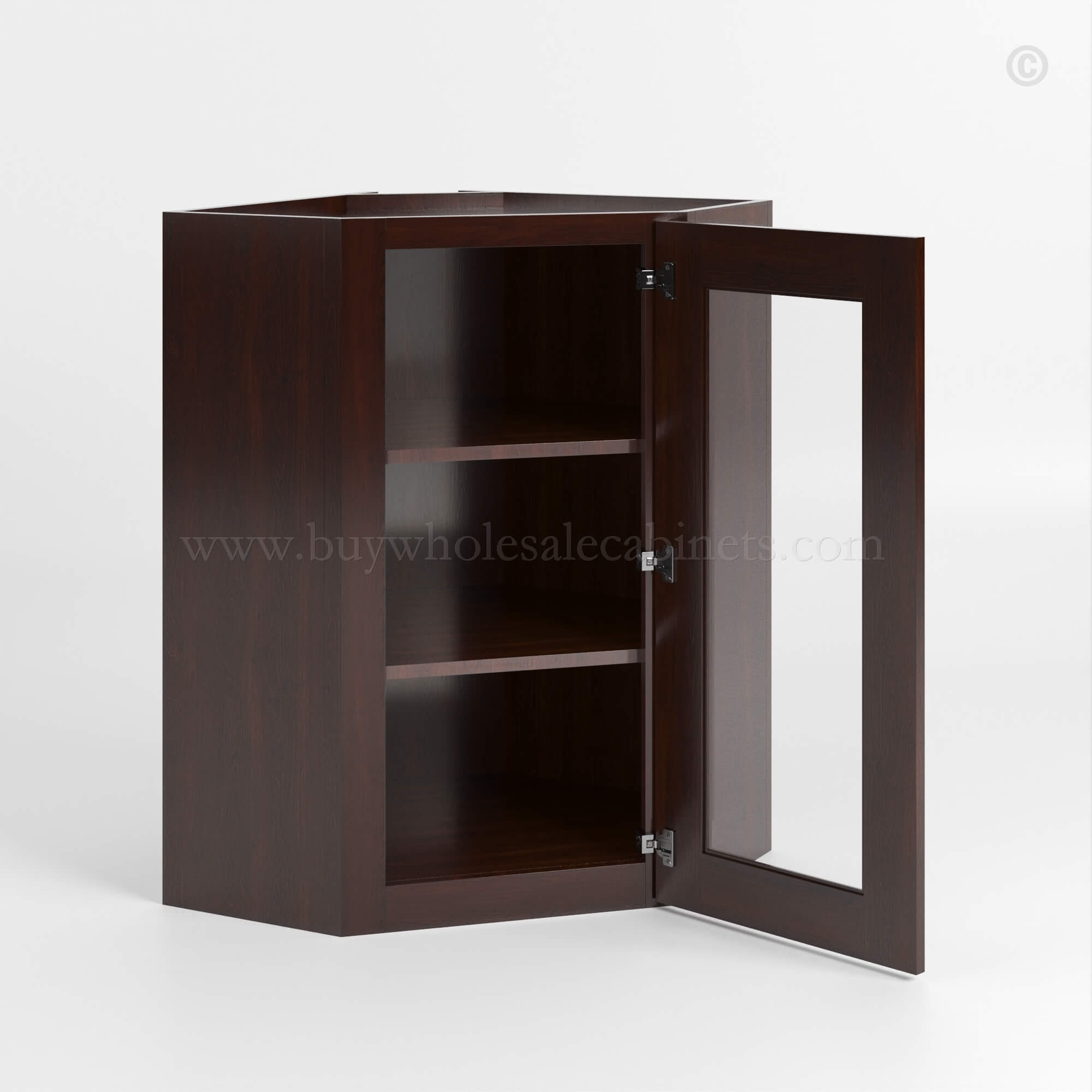 Shaker Espresso 12x 24 Diagonal Corner Wall Shelf with Glass Door