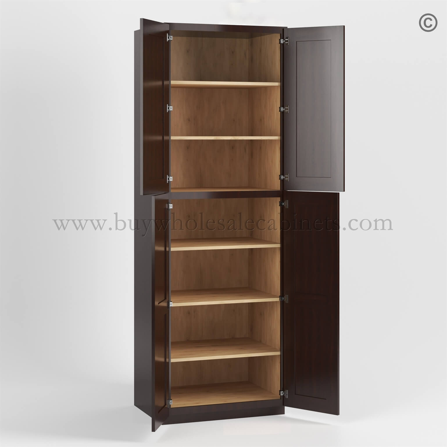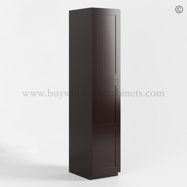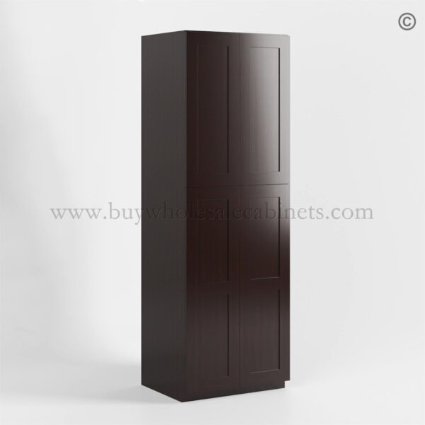Our Shaker Espresso 24 W Two Double Door Utility Pantry Cabinet is 24″ wide, 24″ deep, and available in 3 heights. (84″, 90″, 96″).