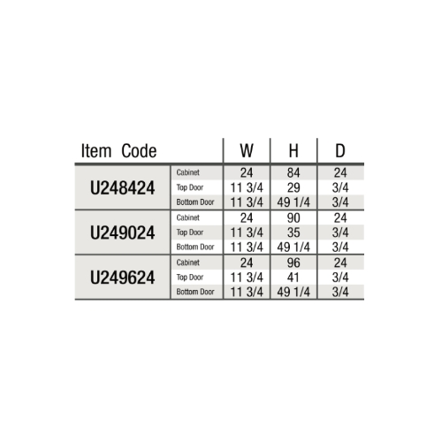 Cabinet Dimensions: 24″W x 84″H x 24″D, 24″W x 90″H x 24″D, 24″W x 96″H x 24″D