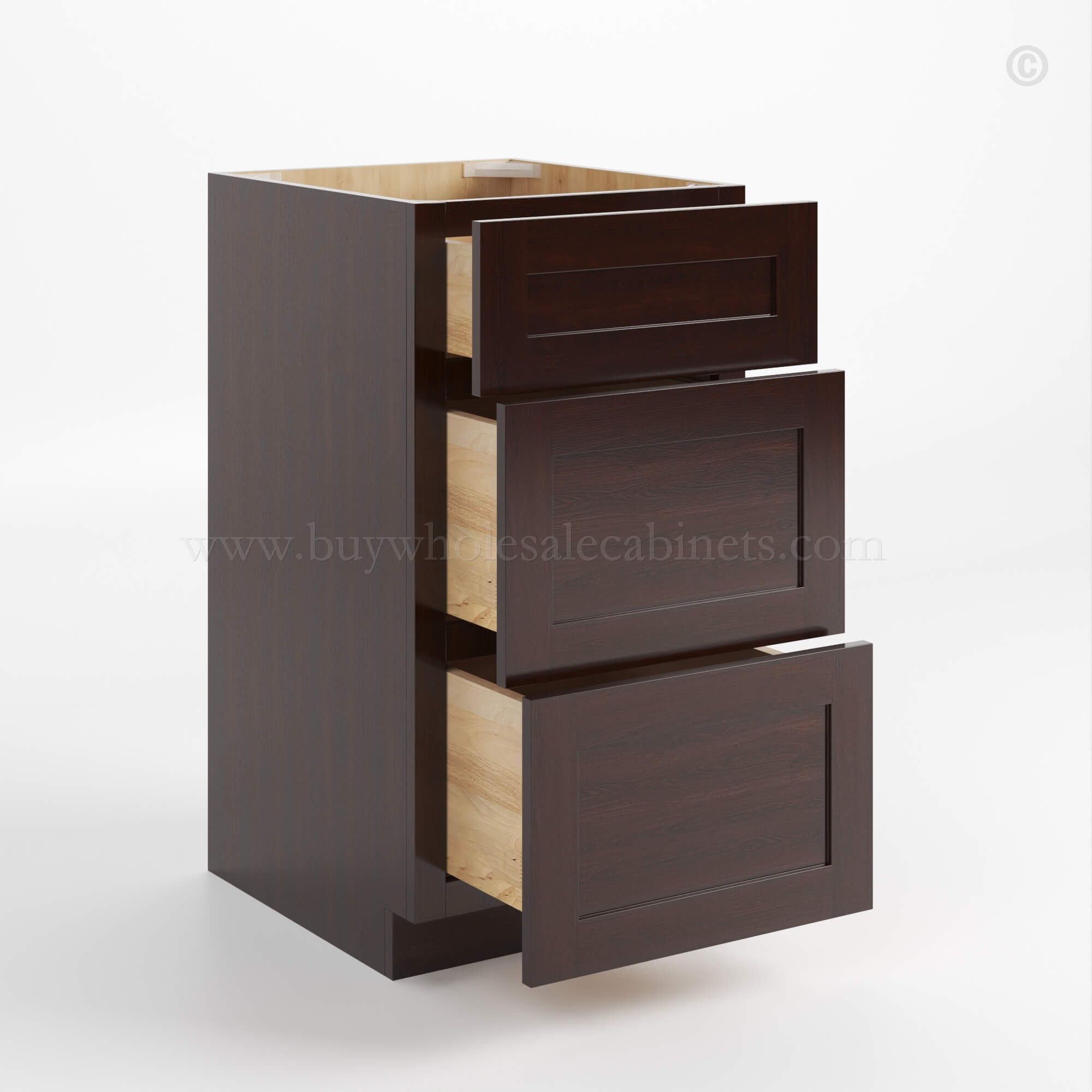 Shaker Espresso Vanity Three Drawer Base Cabinet