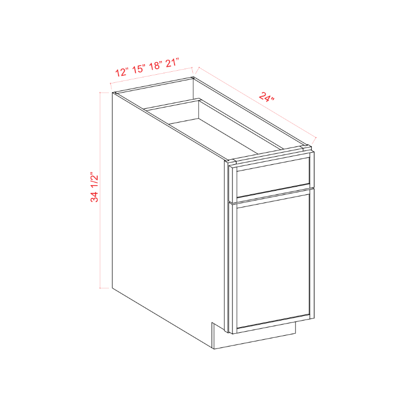 This RTA cabinet oak base single door will complete your kitchen! Design your perfect kitchen and check out our selection of slim oak RTA cabinets.