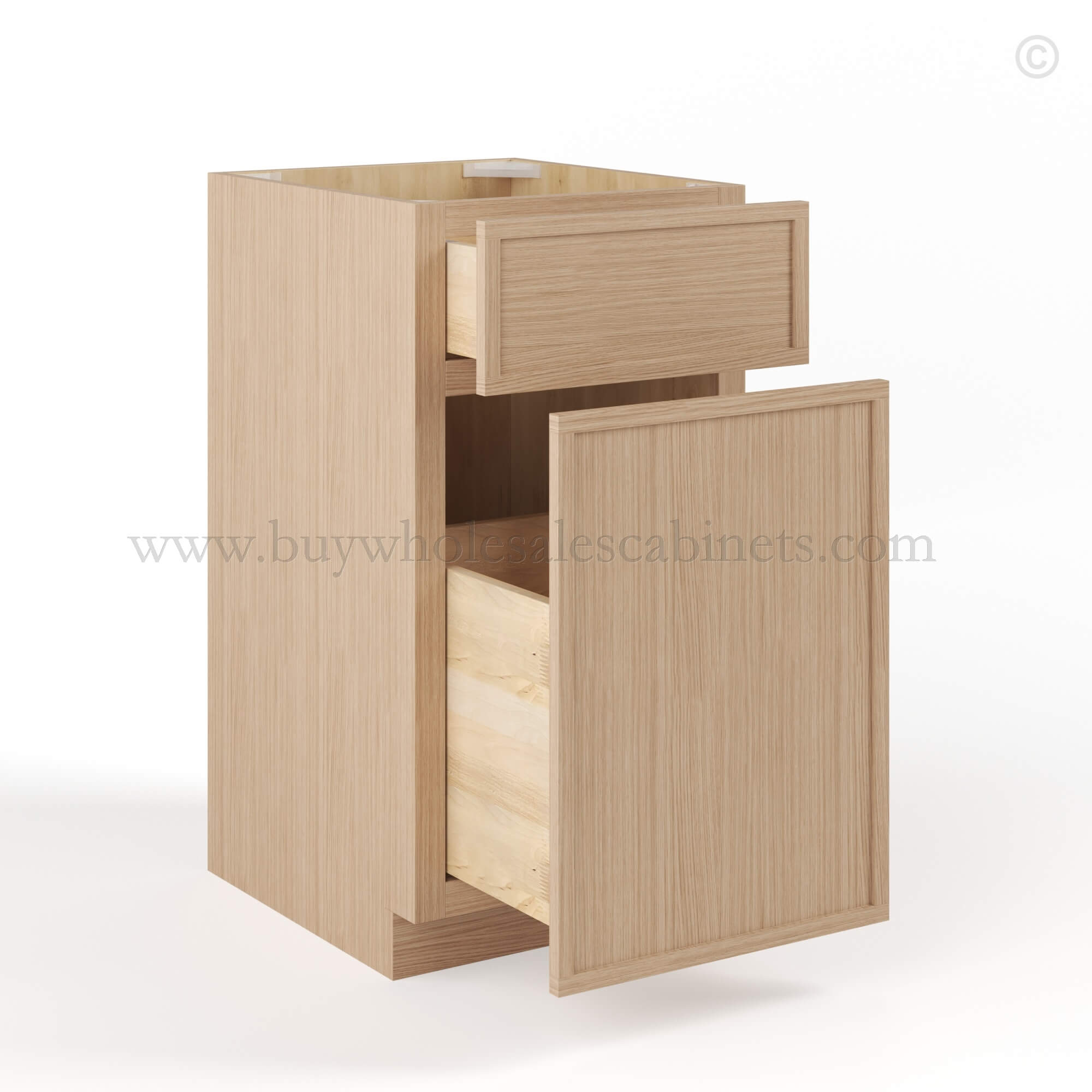 Buy Wholesale Cabinets Slim Oak Shaker Cabinets Line is crafted with meticulous attention to detail, this Slim Oak Shaker Trash Base Cabinet boasts a top-grade “A” plywood cabinet box for exceptional durability and sturdiness. Buy Wholesale Cabinets cabinets feature European soft-close hinges and glides, ensuring smooth and quiet operation every time.