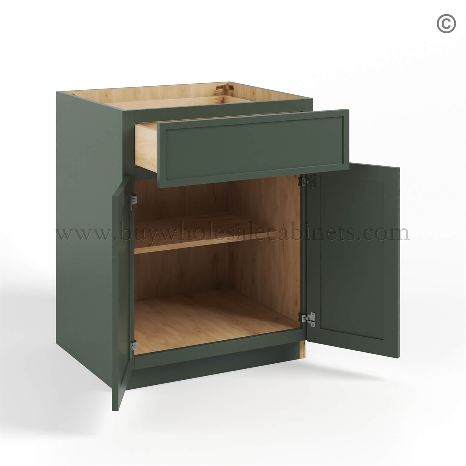 Slim Shaker Green Base Cabinet Double Door & Single Drawer